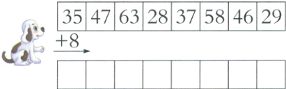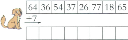 [提示]分别用上面一行的每个数加箭头上的数,把得数写在下面对应的□里。