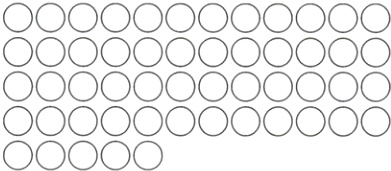 [提示]$53\xrightarrow{-5}48\xrightarrow{-5}43\xrightarrow{-5}38\xrightarrow{-5}33\xrightarrow{-5}28\xrightarrow{-5}23\xrightarrow{-5}18\xrightarrow{-5}13\xrightarrow{-5}8\xrightarrow{-5}3$,因此最多能做10个○,还剩余3个。
