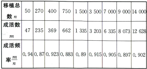 由此表可以估计该种幼树移植成活的概率为______.(结果保留小数点后两位)