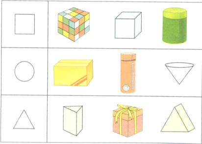 4. 下面的平面图形是用哪个立体图形印出来的?请用线连起来。