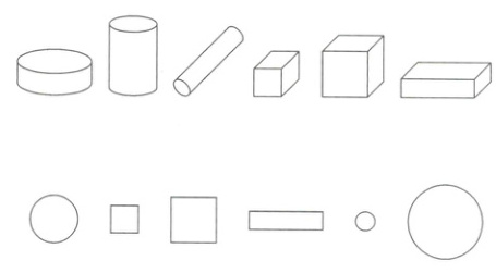 2. 每组中,右边哪个物品不能直接印出左边的图形?圈一圈。