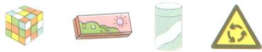 圆柱形水杯可以印出圆圆的形状,长方体纸箱可以印出长长方方的形状,魔方可以印出正方形的形状。(答案不唯一,合理即可)