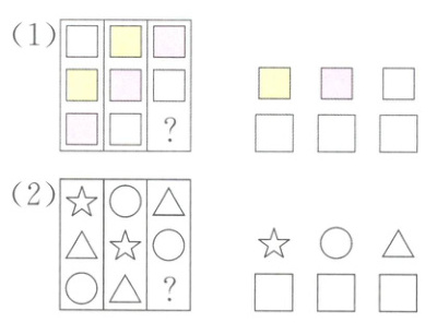 4. 根据图中的规律,判断“?”处应从右面方框中选择哪个图形补上,并在相应的图形下面画“√”。