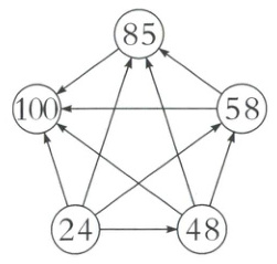 7. 把100,24,85,58,48这五个数填到相应的○里,要求每个箭头尾端的数小于箭头所指的数。