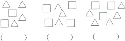 4. 用□表示10,用△表示1,下面这几堆卡片代表的数各是多少?填一填。