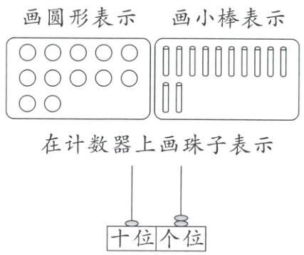 画圆形表示 画小棒表示 在计数器上画珠子表示