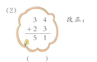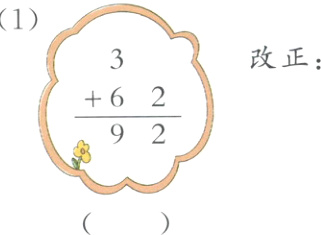 4. 图中的竖式对吗?对的画“√”,错的画“×”,并改正。