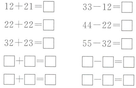 33 21 44 22 55 23 42+24=66 66−42=24 52+25=77 77−52=25(部分答案不唯一)