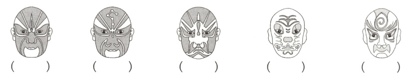 1. 新素材 创新题 京剧脸谱艺术是广大戏曲爱好者非常喜爱的一门艺术,也是我国传统文化的标志之一。下面的脸谱中,哪些是轴对称图形?是轴对称图形的画“√”。(5分)