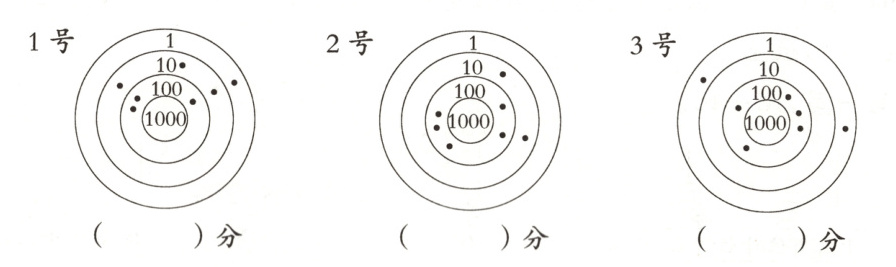 2. 下面靶子上的点代表选手的成绩。先写出他们的成绩,再给他们排名次。(12分)
