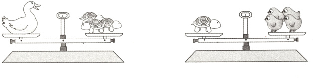 8. 1只乌龟和( )只小鸡同样重,1只大鹅和( )只小鸡同样重。