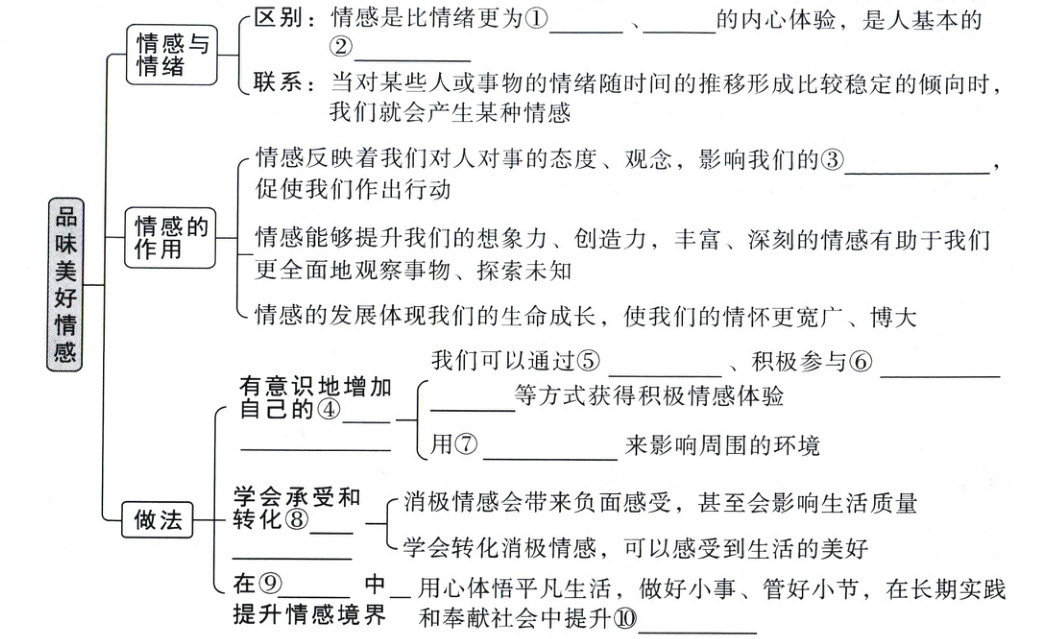 1. 新考法 概念图示 在复习情绪情感相关知识时,小李同学绘制了下列示意图,你认为正确的是 ( )