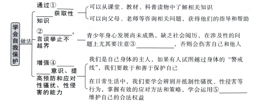 ①从课堂、教材中了解相关知识 ②从科普读物中了解性知识 ③可以向父母、老师等咨询相关问题 ④回避性知识,多与同性朋友交往