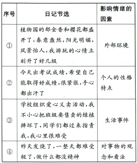 8. 某校七年级(3)班的道德与法治学习小组围绕“做情绪的主人”开展学习活动,请你一起参与。