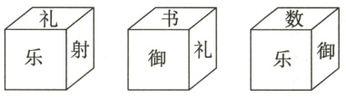 6. 中国古代的“六艺”是礼、乐、射、御、书、数。如图,一个正方体的6个面上分别写着“六艺”中的一种,根据这个正方体摆放的三种情况判断,与“礼”“乐”“射”相对的分别是哪个字?