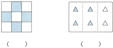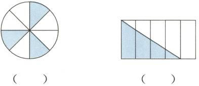 (2) 涵涵把5个梨平均分给4个小朋友,每个小朋友分得这些梨的( )。