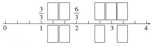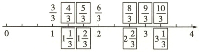 里;1后面的数用一又三分之几表示,2后面的数用二又三分之几表示,3后面的数用三又三分之几表示,写在直线下面的