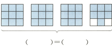 1. 先用假分数表示下面各图中的阴影部分,再把假分数化成带分数。