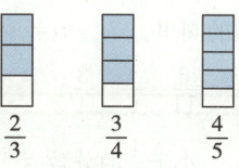 $1 - \frac{2}{3}=\frac{1}{3}$ $1 - \frac{3}{4}=\frac{1}{4}$ $1 - \frac{4}{5}=\frac{1}{5}$