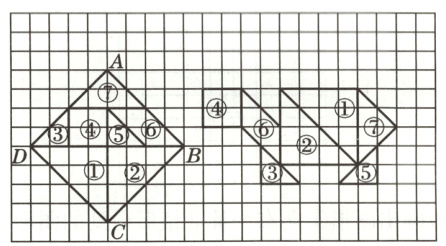 (1)正方形ABCD中的图形④先向右平移7格,再向上平移1格,就能与“小乌龟”中的图形④重合。
