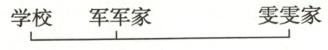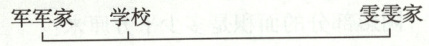 6. 雯雯家、军军家和学校在同一条街上,雯雯家距离学校$\frac{3}{8}$千米,军军家距离学校$\frac{1}{8}$千米。