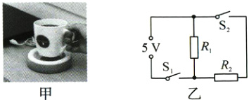 12.(2024·广东深圳模拟)母亲节时,小明买了一个如图甲所示的电热杯垫送给妈妈,电热杯垫通过USB接口供电,杯垫的简化电路如图乙所示。电热杯垫有加热和保温两挡功能,$R_{1}$、$R_{2}$为加热电阻,USB接口的输出电压为5 V,$R_{1}$电阻为10Ω,加热挡的功率为7.5 W。下列说法正确的是( )