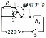 9. 某款电饭锅有加热和保温两个挡,加热挡的功率为1 000 W,如图是其简化的电路图,已知R1 = 4R2,电饭锅的旋钮开关处于图示位置时是______挡;电饭锅在保温挡工作1 min产生的热量是______J。
