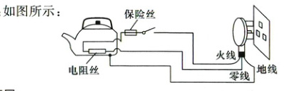 13. 如图所示,根据安全用电的原则,分别把电水壶的3条接线连接到插头上。