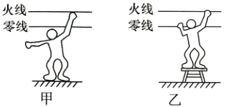 乙鸟会有触电危险,甲鸟相对 乙鸟与灯泡并联,电路一旦接通,其两端电压为220V,故乙鸟会有触电危险 与导线并联,被导线短路,故甲鸟相对安全。