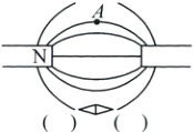 5. 如图所示,是两个磁极靠近时磁感线的分布情况,根据图中标示的N极,在括号内标出静止小磁针的N、S极并标出A点磁感线的方向。
