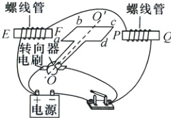 6.(安徽)图示为某电动机的原理图,EF、PQ为螺线管,abcd为电动机的线圈,OO'为转轴。闭合开关,从O点沿转轴观察,线圈顺时针转动,则 ( )