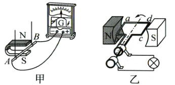 2.(2024.长治期末)学习了磁现象的知识后,小乔进行了下面的实验探究:利用图甲所示的装置,让闭合电路中的一部分导体棒AB 在磁场中运动,观察电流表指针的偏转情况,记录在表中。已知当电流从电流表的左侧接线柱流入时,指针向左偏转;从右侧接线柱流入时,指针向右偏转。根据表中记录的实验信息,完成下列问题: