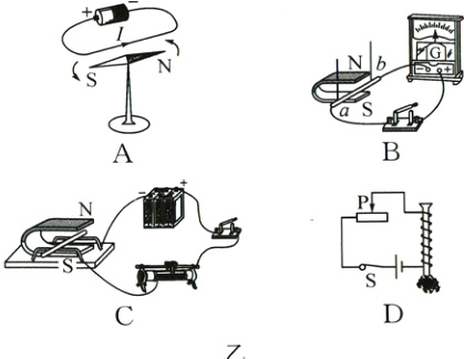 12. 市场上流行一款不需要电池的门铃,如图甲所示,其内部线圈固定,当按压门铃压板时,压板后面的弹簧带动磁体运动,线圈产生的电流使发声元件发出声音。图乙中能说明此原理的是( )