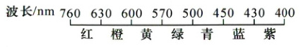6.(广东广州)各色光在真空中的波长如图所示,植物中叶绿素a会吸收波长在430~662 nm之间的光。真空中,波长650 nm的光 ( )