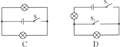 3. (2024·福建)小闽设计家庭保险箱指纹锁的电路图,指纹识别成功相当于开关闭合,录入两人的指纹,其中任意一人的指纹识别成功就能开锁。图中符合要求的电路图是( )