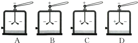 1. (2024·湖北)将毛皮摩擦过的橡胶棒接触验电器,能正确表示橡胶棒和验电器金属箔片带电情况的图是 ( )