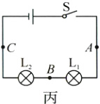 【拓展设问】为进一步得出两个灯串联时电流的规律,小华按图丙连接电路,闭合开关后发现两灯都不亮,为了找出原因,将电流表接在A、B两点间,闭合开关发现电流表有示数,说明L₁可能存在______故障;排除故障后,测量A、B、C三点的电流,得出Iₐ=Iᵦ=Iₑ,小华认为不需要再测量,在(2)结论的基础上,通过推理也可以得出相同结论,请写出小华的推理过程:______________________。