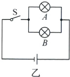 3.同类型的A、B两个灯泡,分别按图中甲、乙两种方式连接,电源电压相同且恒定,已知RA<RB,忽略灯丝电阻随温度的变化,且电路安全。两电路均闭合开关后 ( )