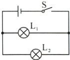 6. 原创题 如图所示,闭合开关S后,标有“6 V 3 W”的灯$L_{1}$和标有“3 V 3 W”的灯$L_{2}$均发光,设灯丝电阻不变,则两灯的电阻$R_{1}:R_{2}=$________,通过两灯的电流$I_{1}:I_{2}=$________,两灯消耗的电功率$P_{1}:P_{2}=$________。
