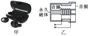 6. 如图甲所示,这是一款动圈式无线耳机及其充电仓,图乙是其内部结构的示意图。当音圈中有大小和方向反复变化的电流通过时,音圈带动音膜左右往复运动。音圈之所以会运动,是由于____________________;利用充电仓给无线耳机充电时,充电仓相当于______。