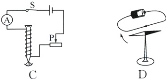 2.(2024·运城模拟)某科技创新大赛上展示了一款新型皮箱,其内部没有电源,但拖动皮箱让轮子滚动时,嵌在轮子里的 LED 灯会发光,使得夜间行走更安全。下列选项中与其工作原理相同的是 ( )