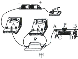 (1)请用笔画线代替导线,在图甲中完成电路连接,要求滑片P向右滑动时,电流表的示数变小。