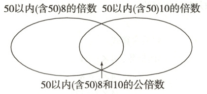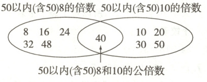 1. 把50以内(含50)8和10的倍数和公倍数填在相应的位置上。