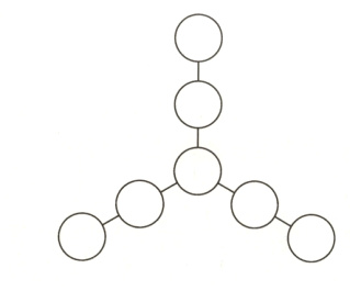 5. 把$\frac{1}{2}$、$\frac{1}{3}$、$\frac{1}{4}$、$\frac{1}{6}$、$\frac{1}{12}$、$\frac{5}{12}$、$\frac{7}{12}$这7个分数填入下面的〇里,使每条直线上的3个分数的和相等。