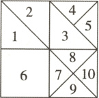 (3)图形1与图形2的面积和比图形5与图形10的面积和多占大正方形面积的几分之几?