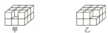 (1) (真题链接·昌平区) 如图,甲、乙两个立体图形都是由大小相等的小正方体拼成的,它们的表面积相比,( )。