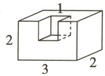 (3×2 + 3×2 + 2×2)×2 = 32(分米²)情况二 从长方体木料的一个面上挖去一个棱长是1分米的正方体。如下所示:(图中单位:分米)