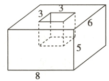 3. 如图,在一个棱长是5厘米的正方体木块的中间挖去一个长是5厘米,宽和高都是1厘米的小长方体,剩下的立体图形的表面积是多少平方厘米?(母题仿练)