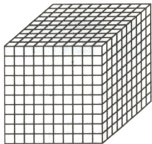 (4)(真题链接·大兴区)先把棱长是1分米的正方体切割成棱长是1厘米的小正方体(如图),再把这些小正方体排成一排,拼成一个长方体。这个长方体的体积是( )厘米³。