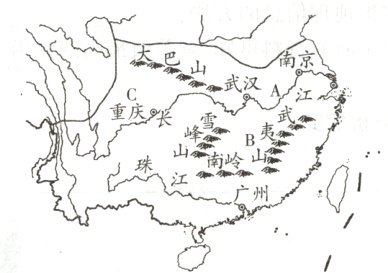 (3)南方地区地形复杂,东西差异明显,西部以______和______为主,东部是______和______交错分布。(4分)